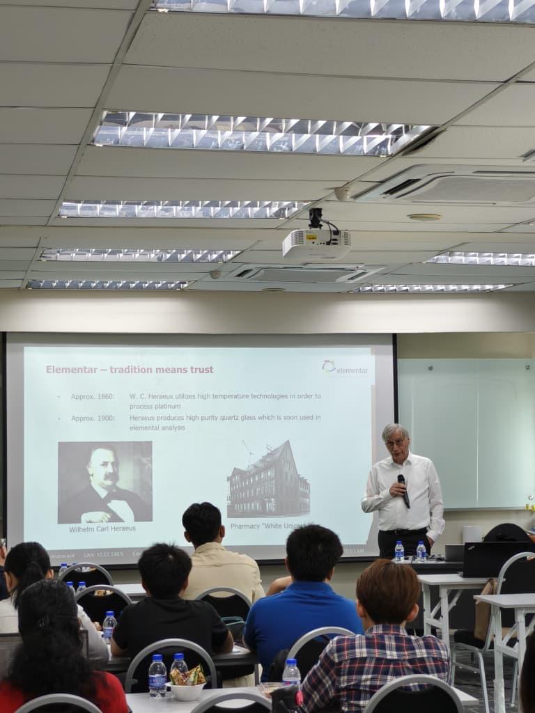 Seminar “Complete Elemental Analysis Workflow: From Sample Digestion to Results with Milestone and Elementar” anjuran Interscience Sdn. Bhd. telah diadakan pada 26 Ogos 2025 (Selasa) di Makmal Penyelidikan Universiti Industri (UIRL), PPMU UTM bertujuan memberi pendedahan kepada pelajar, pensyarah UTM serta pihak industri mengenai teknik terkini analisis unsur dari proses pencernaan sampel hingga memperoleh keputusan yang tepat, serta meningkatkan kefahaman peserta terhadap aplikasi praktikal teknologi Milestone dan Elementar melalui perkongsian daripada Dr. Ralf Winkler dan Ms. Phene Neoh.