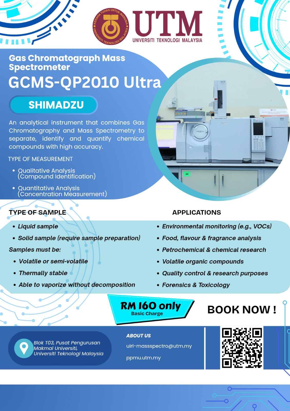 Our GCMS-QP2010 Ultra combines Gas Chromatography & Mass Spectrometry for:
