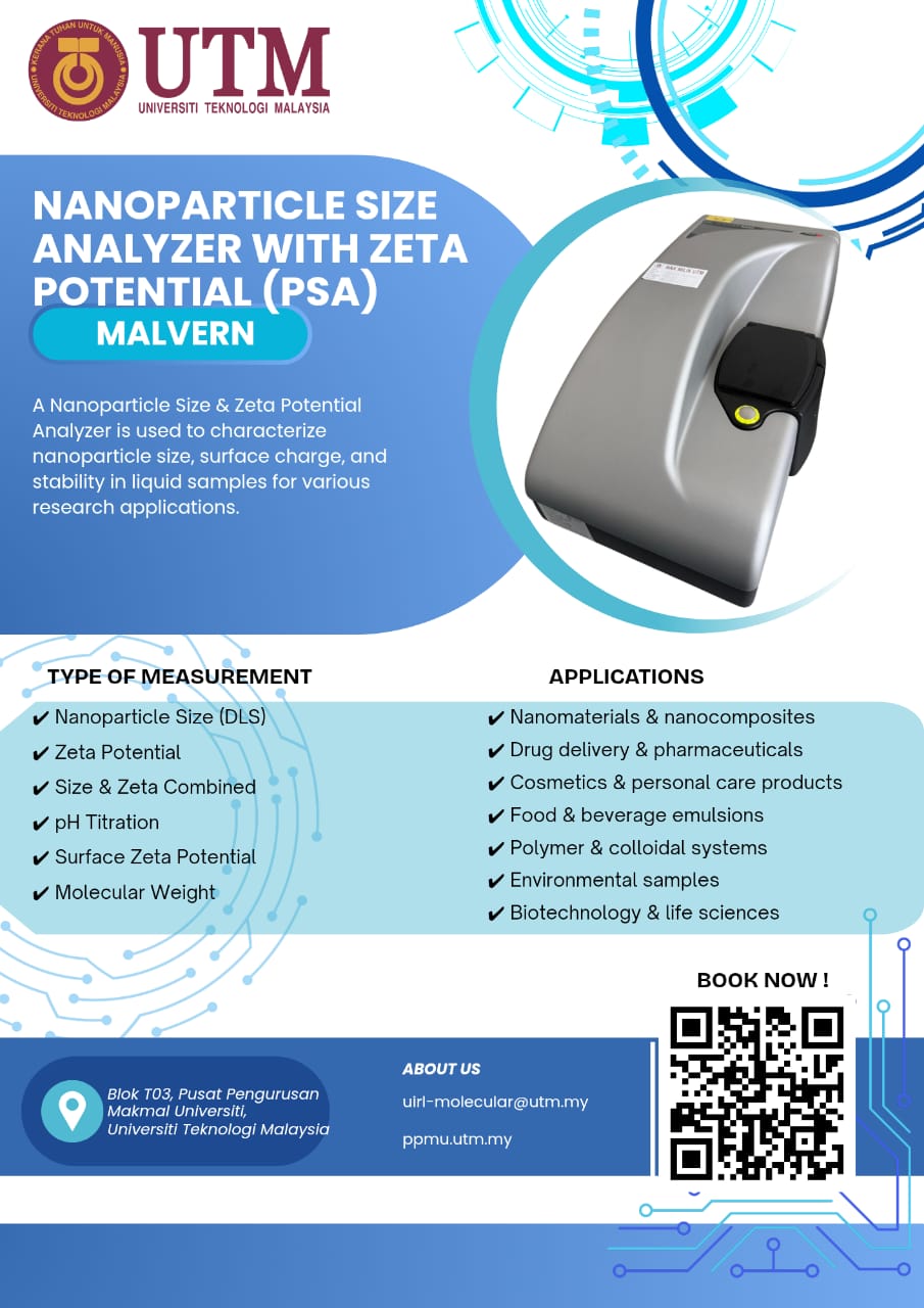 Our Malvern Nanoparticle Size Analyzer (PSA) at UTM provides: